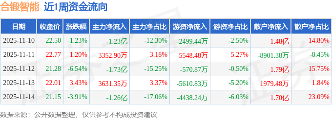 资金流向数据方面,本周合锻智能主力资金算计净流出3.51亿元,游资资金算计净流出7570.9万元,散户资金算计净流入4.27亿元。本周资金流向一览见下表:
